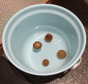 ガーデニング, マカダミアナッツ マカダミアナッツ 2015年4月7日 はく 3件のコメント ハワイ旅行に行ったときに買ってきたマカダミアナッツ。 暖かくなってきたので育てようと思います。 手始めは、水に2~3日つけておくこと。 1個水に浮いているのが不安を掻き立てます。。。 無事芽は出るのだろうか。