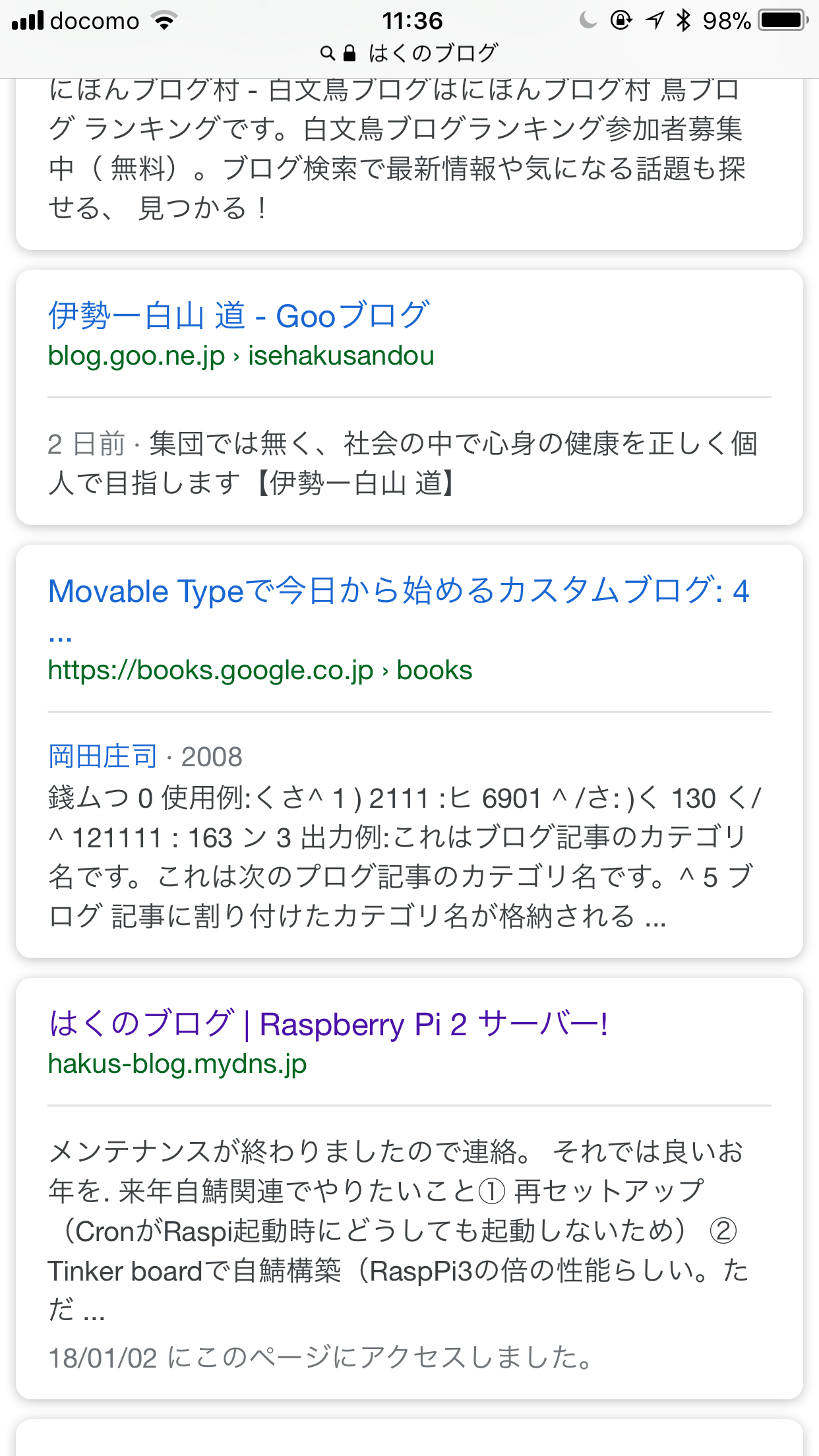 日記 はくのブログ 返り咲き 2018年1月4日 はく 2件のコメント Google検索「はくのブログ」で1ページ目の8番目にランクイン。 こんな感じに今年はネタを織り交ぜようかな。ツイッターの方がよい気もするが、自鯖の醍醐味ということにしよう。